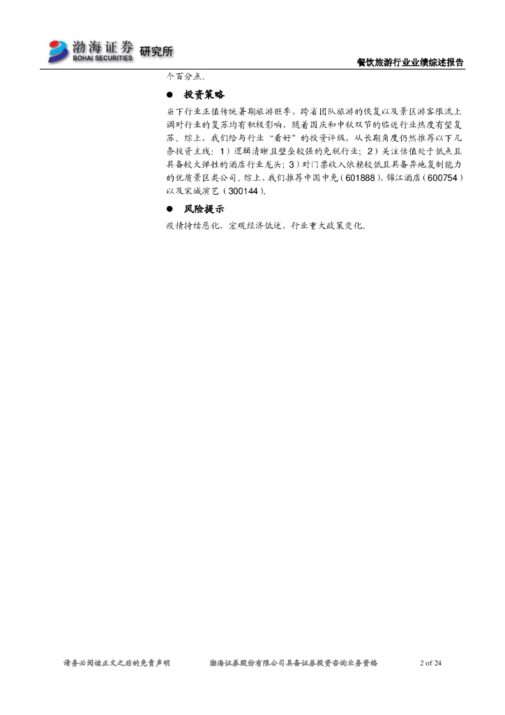 渤海证券:餐饮旅游行业2020年半年报业绩综述:上半年业绩受疫情影响 关注优质赛道龙头公司.pdf