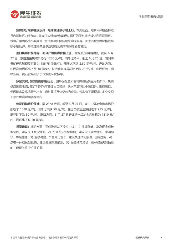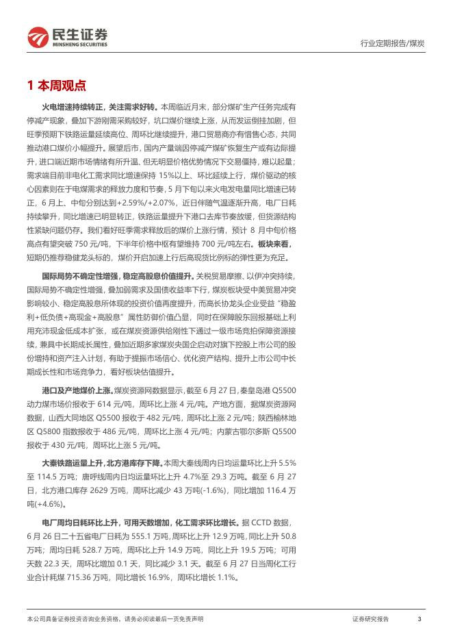 民生证券:煤炭周报:火电增速持续转正,关注需求好转.pdf