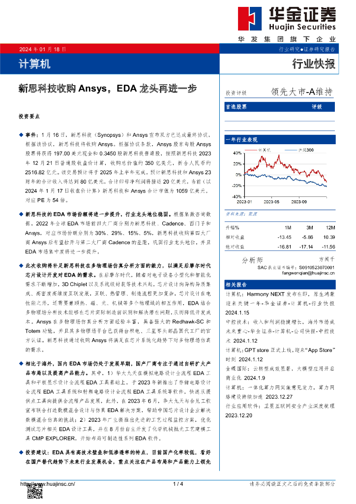 华金证券:计算机行业快报:新思科技收购Ansys,EDA龙头再进一步.pdf