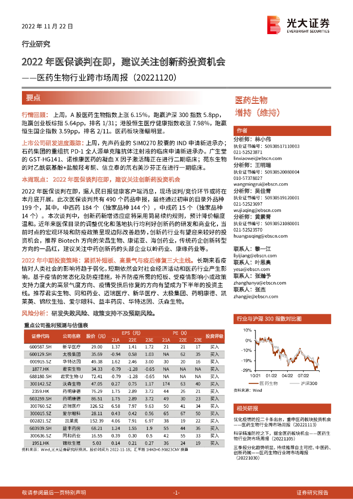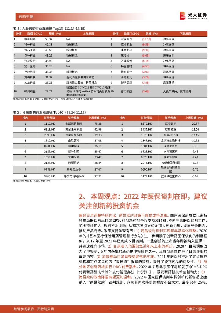 光大证券:医药生物行业跨市场周报:2022年医保谈判在即,建议关注创新药投资机会.pdf