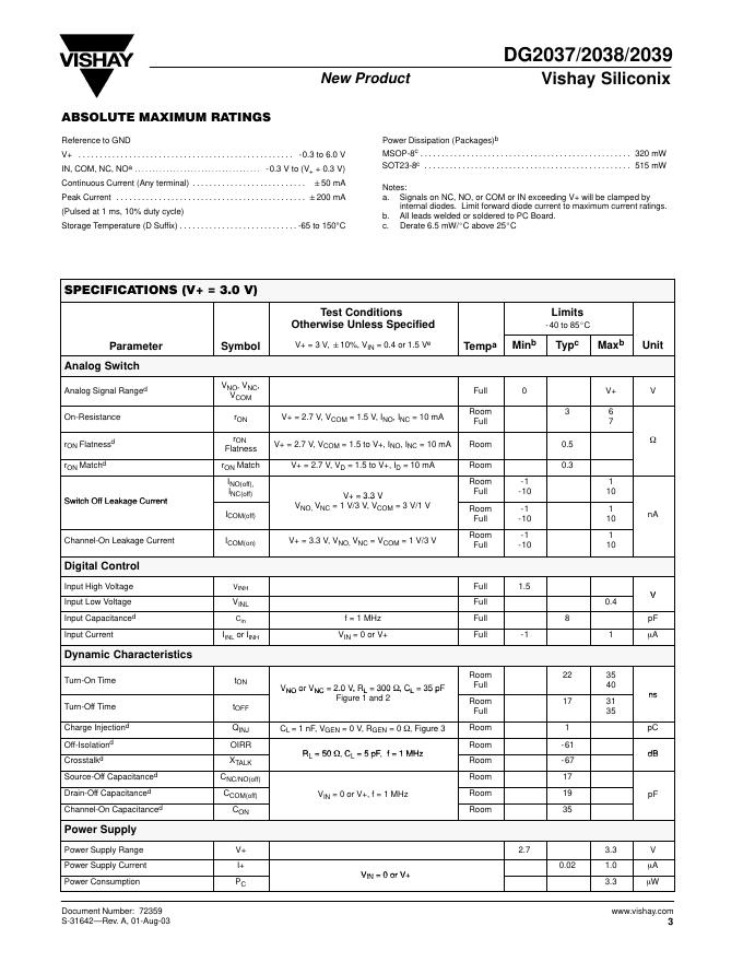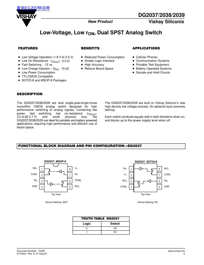 VISHAY DG2037/2038/2039 数据手册.pdf