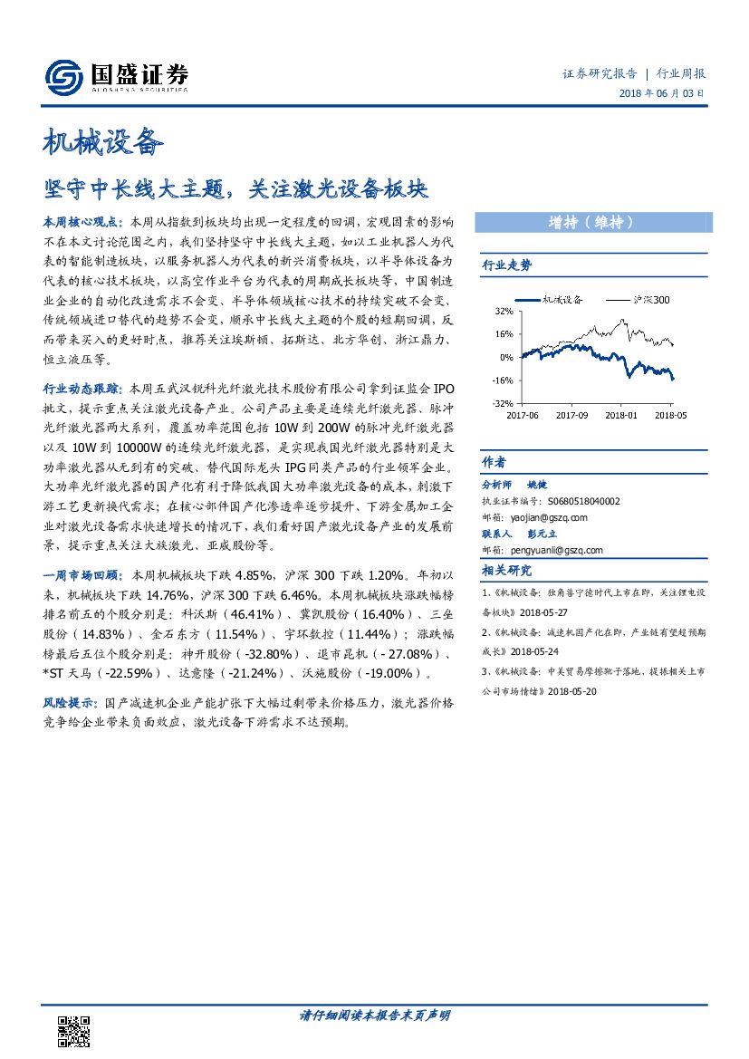 国盛证券:机械设备行业周报:坚守中长线大主题,关注激光设备板块.pdf