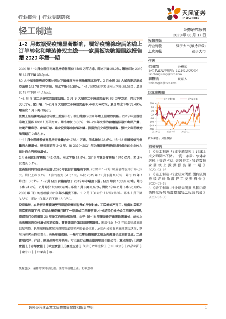 天风证券:家居板块数据跟踪报告第2020年第一期:1-2月数据受疫情显著影响,看好疫情稳定后的线上订单转化和精装修双主线.pdf