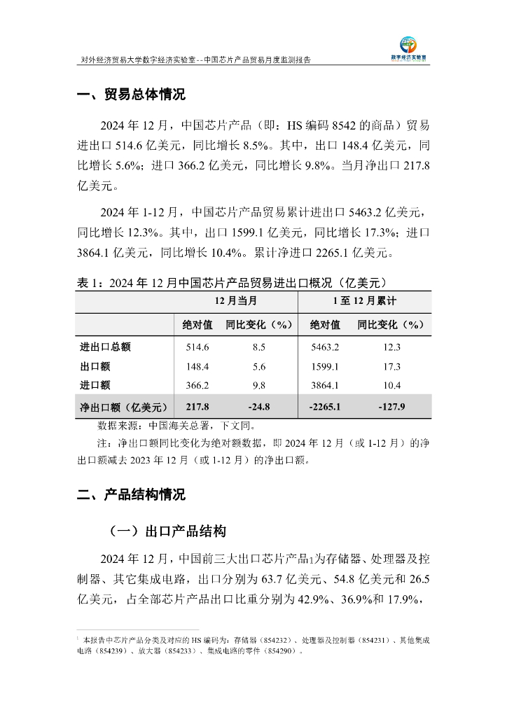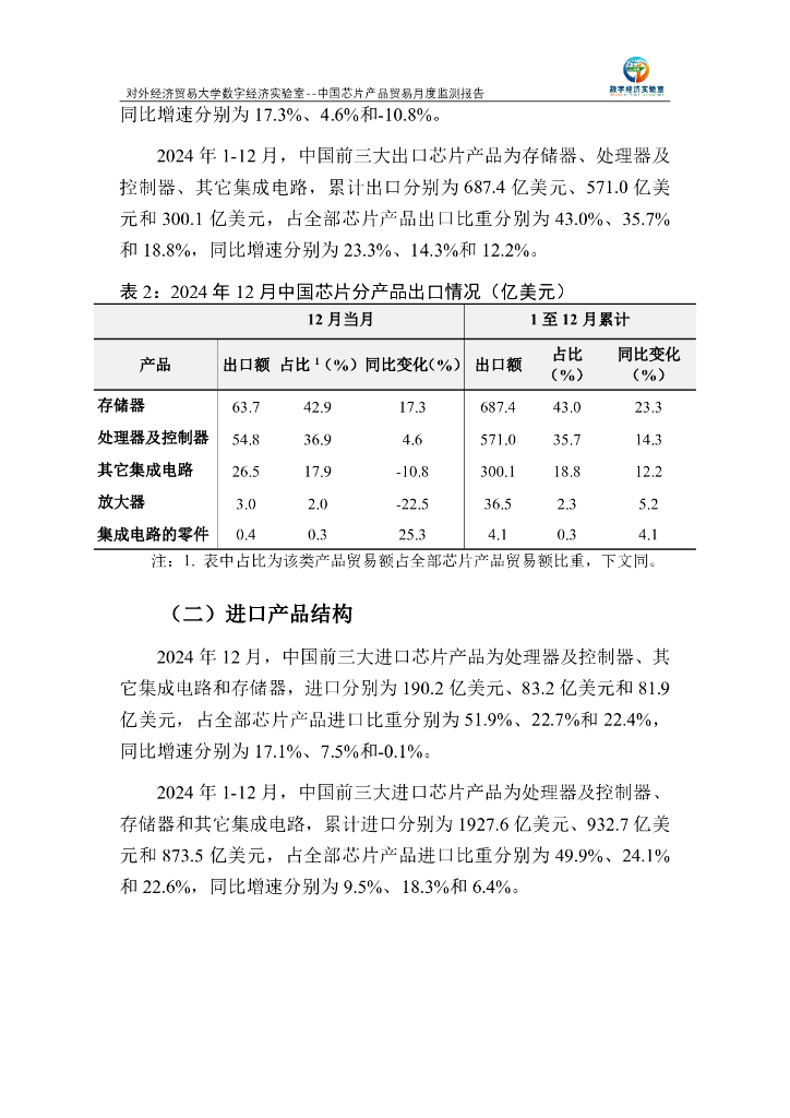 对外经济贸易大学:中国芯片产品贸易月度监测报告(2024年1-12月).pdf