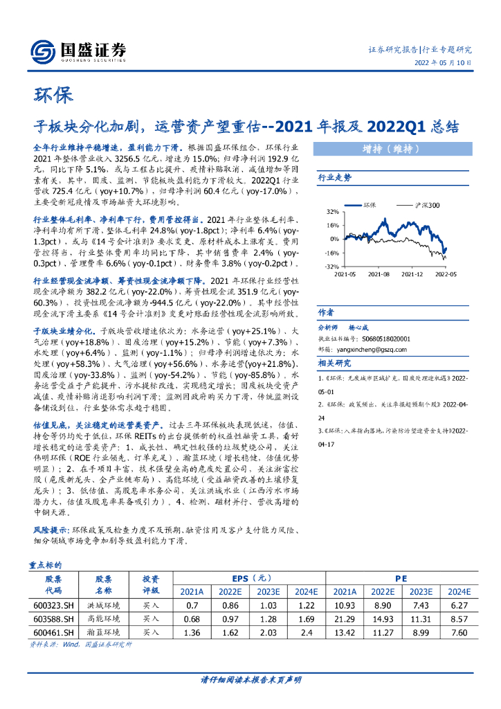 国盛证券:环保2021年报及2022Q1总结:子板块分化加剧,运营资产望重估.pdf