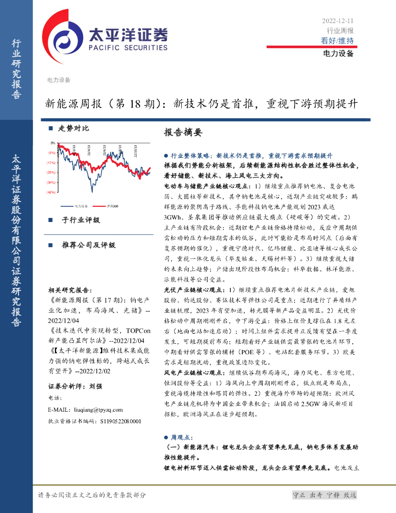 太平洋证券:新能源周报(第18期):新技术仍是首推,重视下游预期提升.pdf