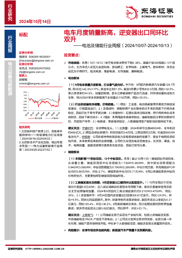 东海证券:电池及储能行业周报:电车月度销量新高,逆变器出口同环比双升.pdf