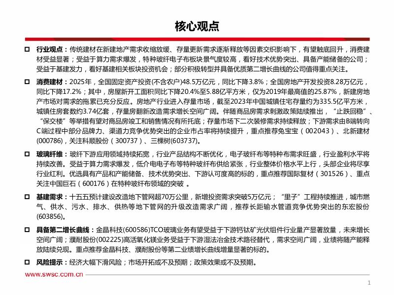 西南证券:建筑材料行业2026年投资策略:重点关注电子布板块,重视第二增长曲线.pdf