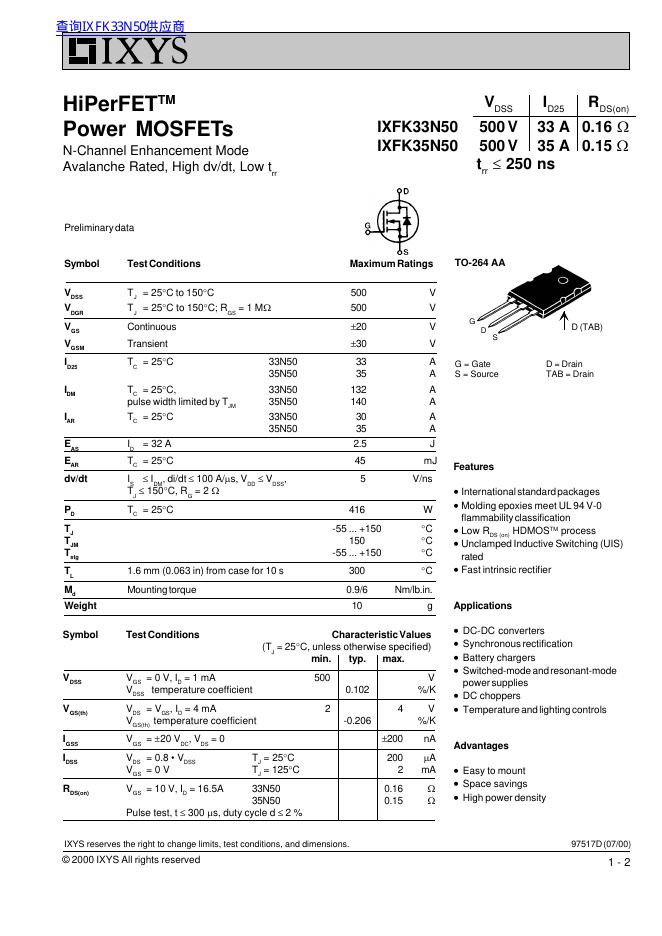 IXYS IXFK33N50/IXFK35N50 数据手册.pdf