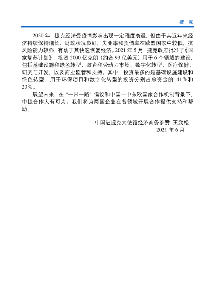 商务部:对外投资合作国别(地区)指南:捷克(2021年版).pdf