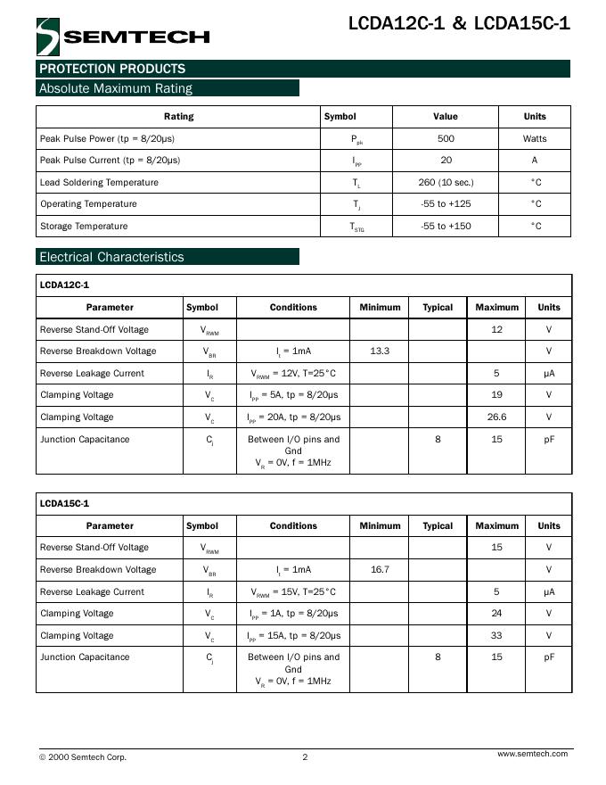 SEMTECH LCDA12C-1/LCDA15C-1 数据手册.pdf