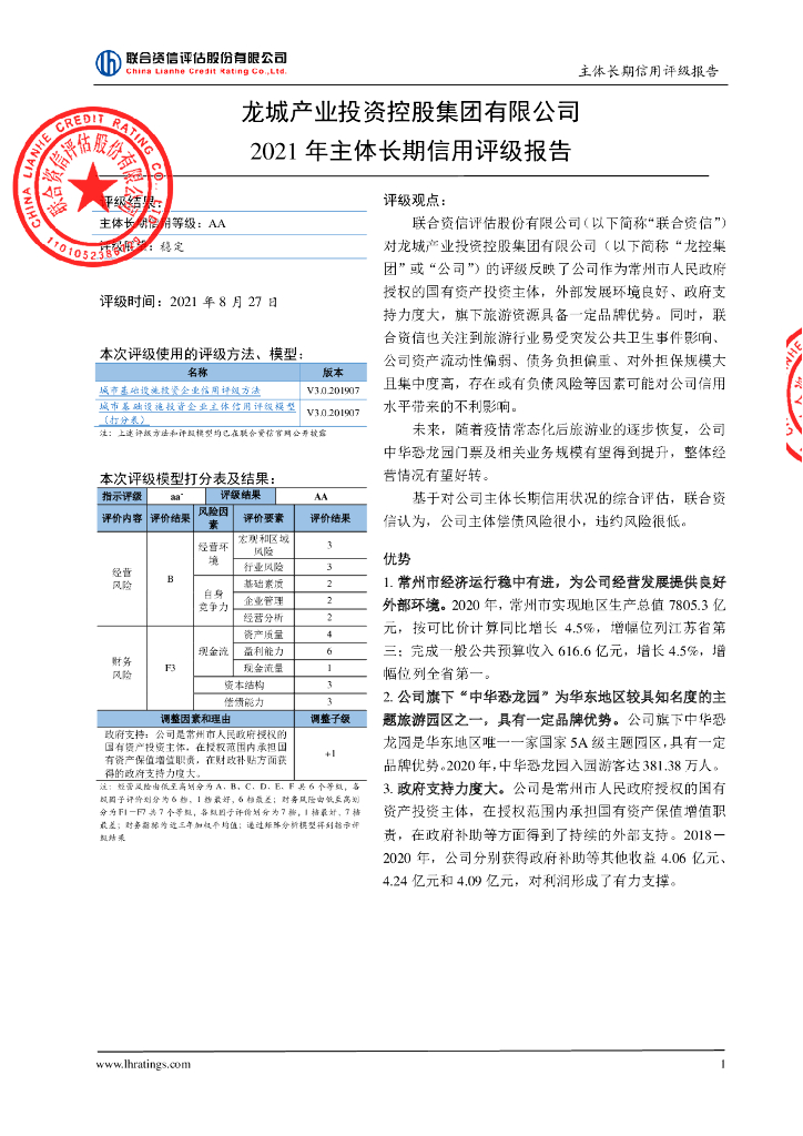 联合资信:龙城产业投资控股集团有限公司2021年主体长期信用评级报告.pdf