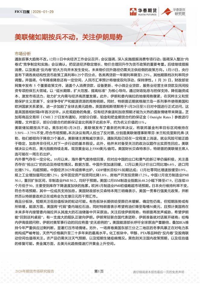 华泰期货:FICC日报:美联储如期按兵不动,关注伊朗局势-260129.pdf