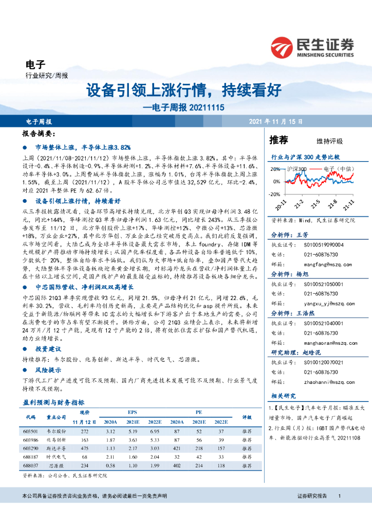 民生证券:电子周报:设备引领上涨行情,持续看好.pdf