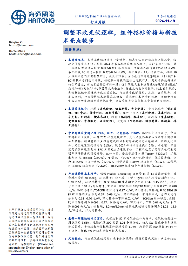 海通国际:新能源板块行业周报:调整不改光伏逻辑,组件招标价格与新技术亮点较多.pdf