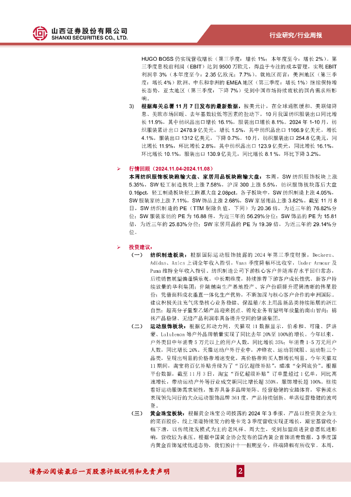 山西证券:纺织服装行业周报:10月我国纺织服装出口同增11.9%,PUMA维持24全年中单位数收入增长指引.pdf