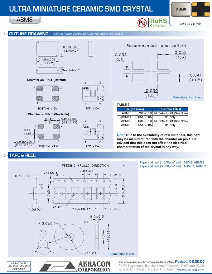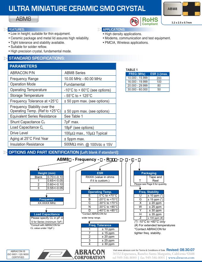 ABRACON ULTRA MINIATURE CERAMIC SMD CRYSTAL 数据手册.pdf