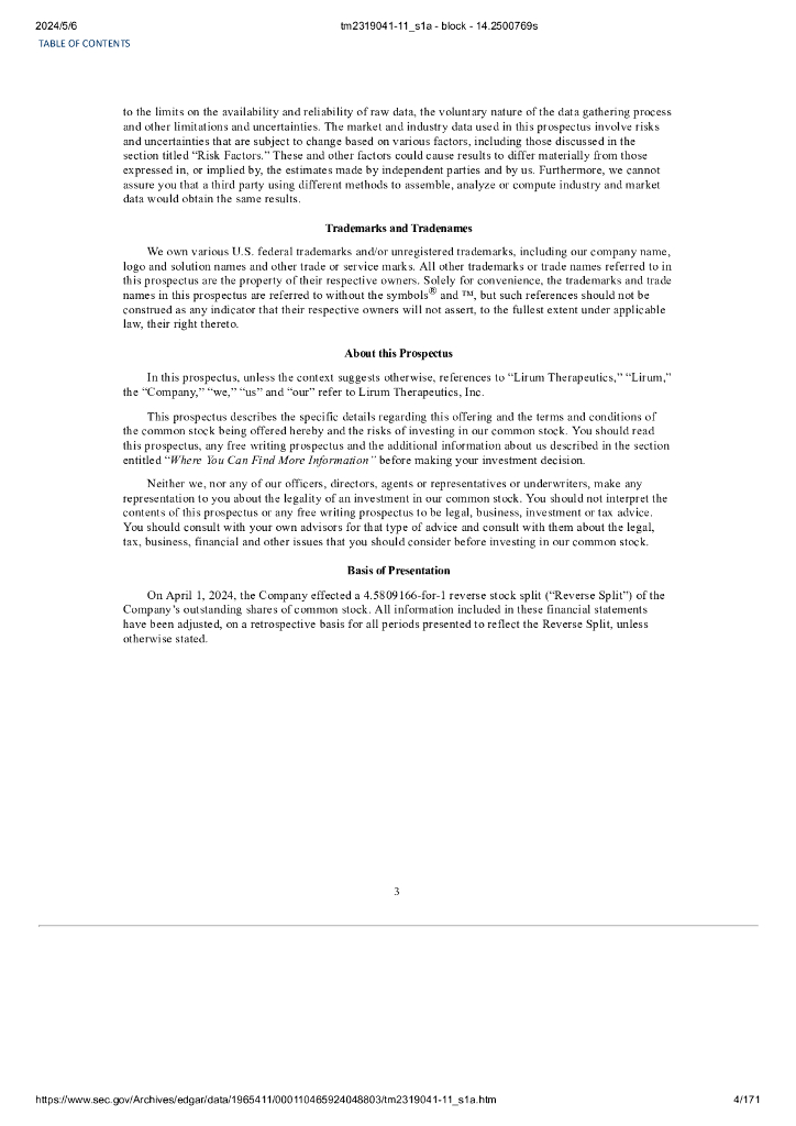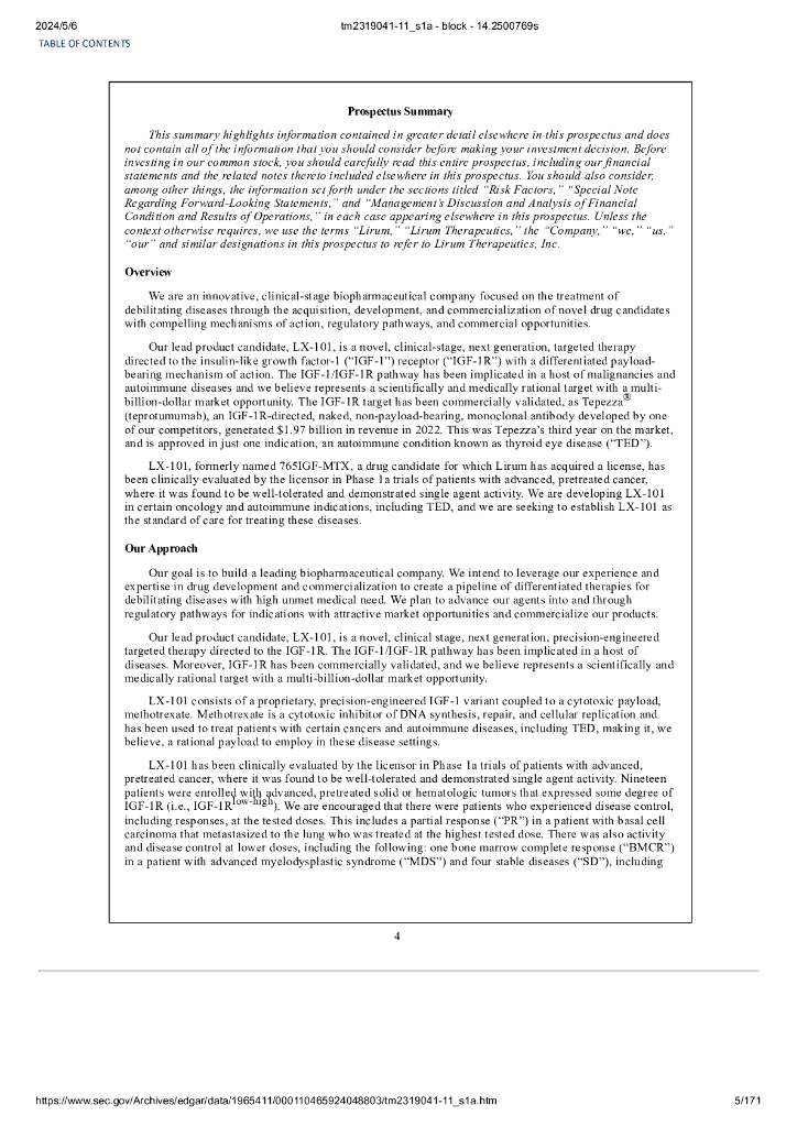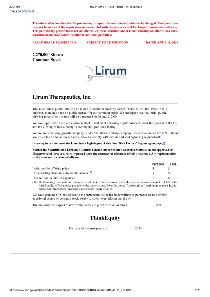 Lirum Therapeutics(LRTX)美国纳斯达克交易所IPO上市招股说明书(Form S-1):肿瘤和自身免疫生物技术公司(英文版).pdf