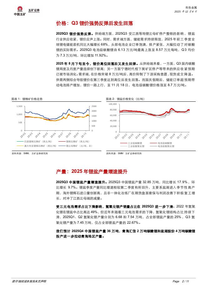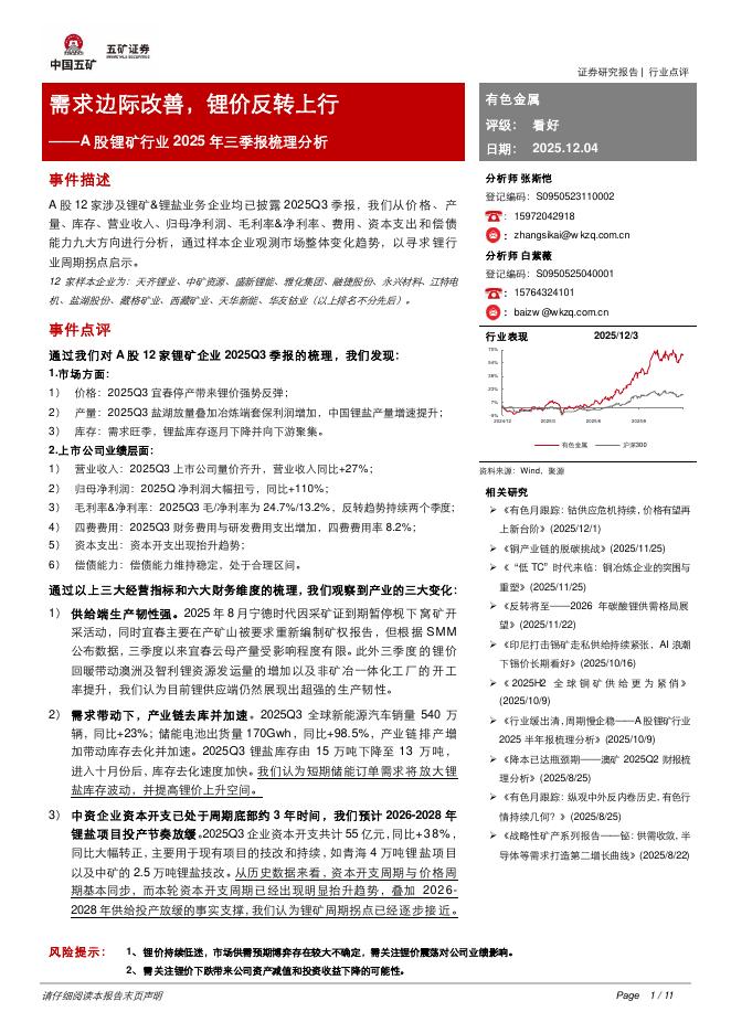 五矿证券:A股锂矿行业2025年三季报梳理分析:需求边际改善,锂价反转上行.pdf