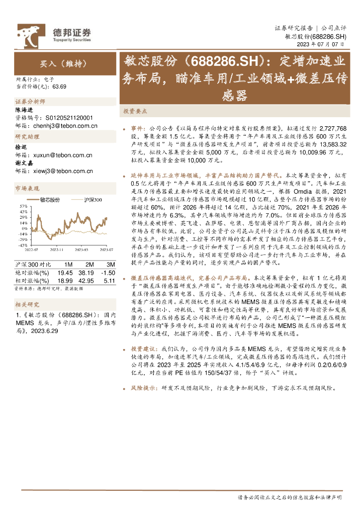 德邦证券:敏芯股份(688286)-定增加速业务布局,瞄准车用/工业领域+微差压传感器.pdf