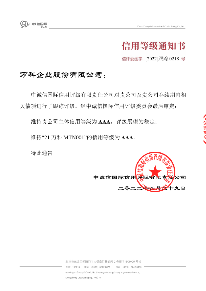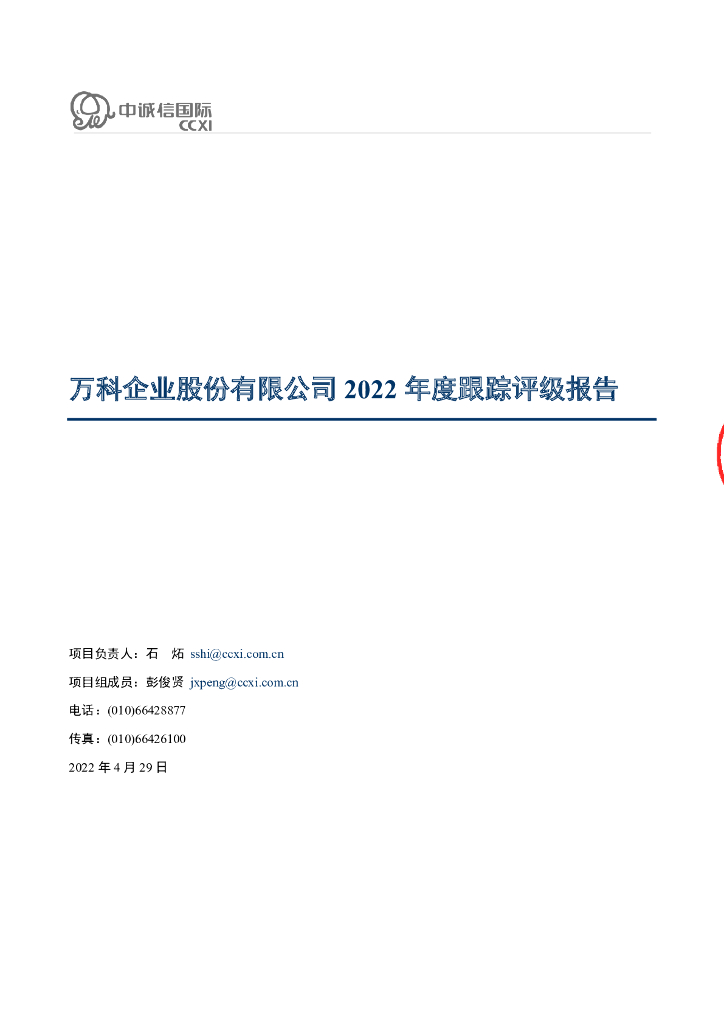 中诚信:万科企业股份有限公司2022年度跟踪评级报告.pdf
