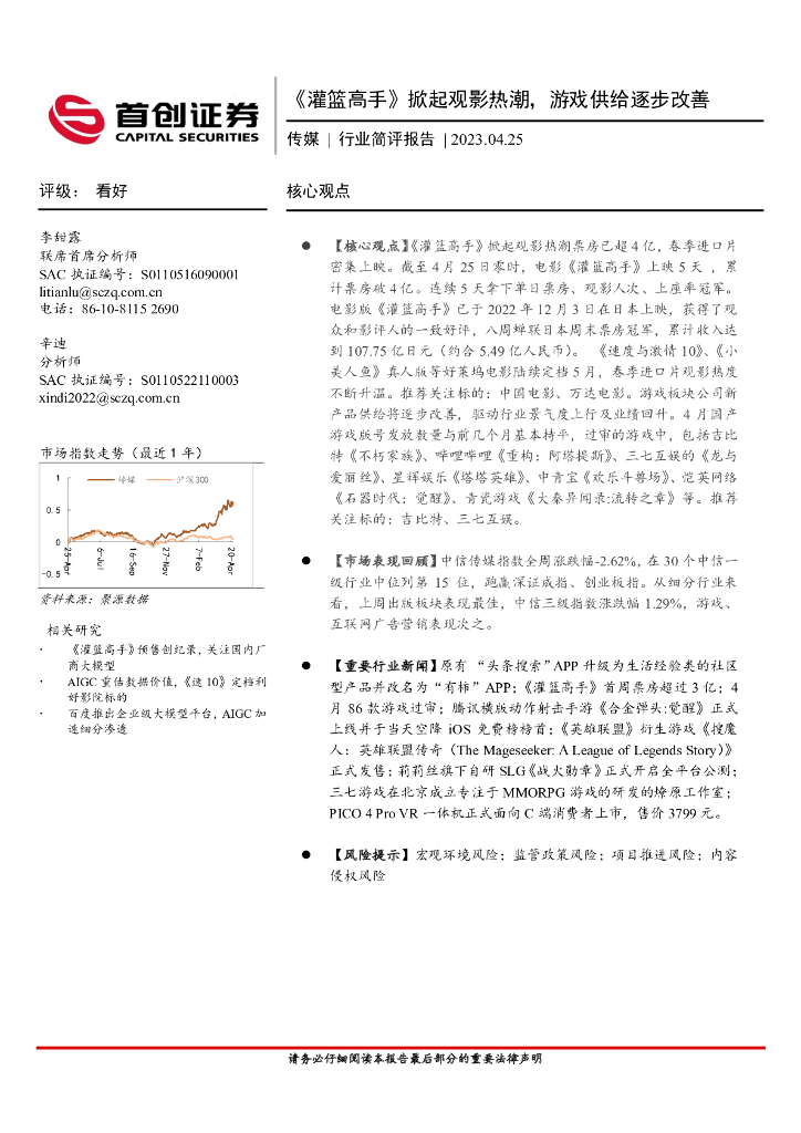 首创证券:传媒行业简评报告:《灌篮高手》掀起观影热潮,游戏供给逐步改善.pdf
