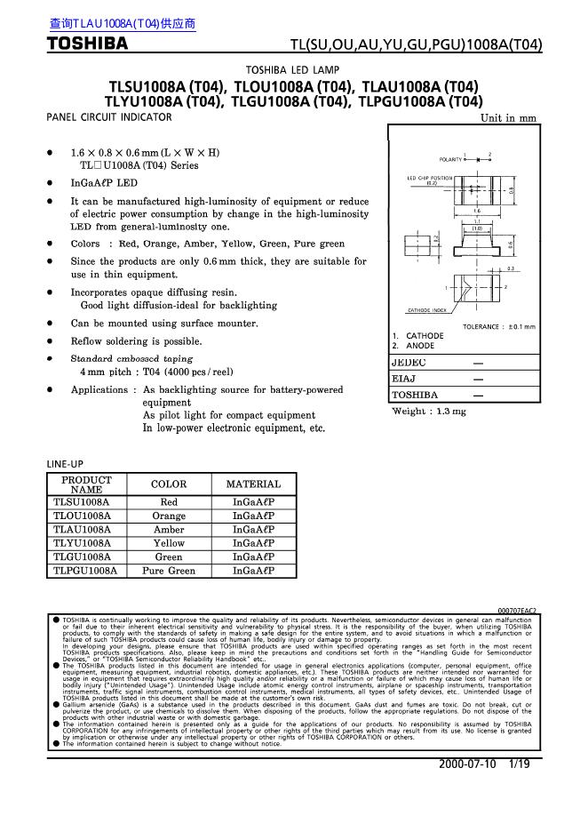 东芝 东芝 TLSU1008A(T04), TLOU1008A(T04), TLAU1008A(T04), TLYU1008A(T04), TLGU1008A(T04), TLPGU1008A(T04) 数据手册.pdf