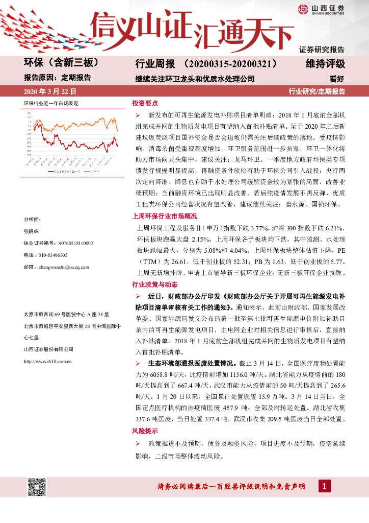 山西证券:环保(含新三板)行业周报:继续关注环卫龙头和优质水处理公司.pdf