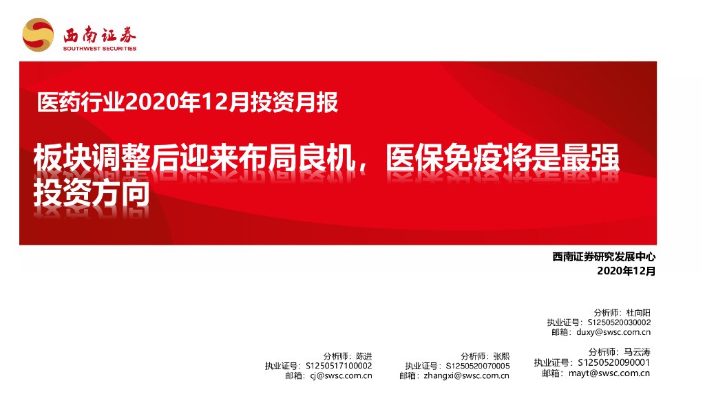 西南证券:医药行业2020年12月投资月报:板块调整后迎来布局良机,医保免疫将是最强投资方向.pdf