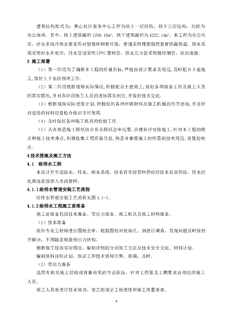 北京某街道社区服务中心项目给排水专业的施工方案.doc