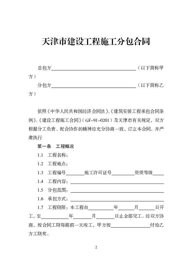 JF-2001-014 天津市建设工程施工分包合同.pdf