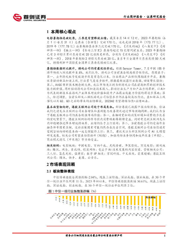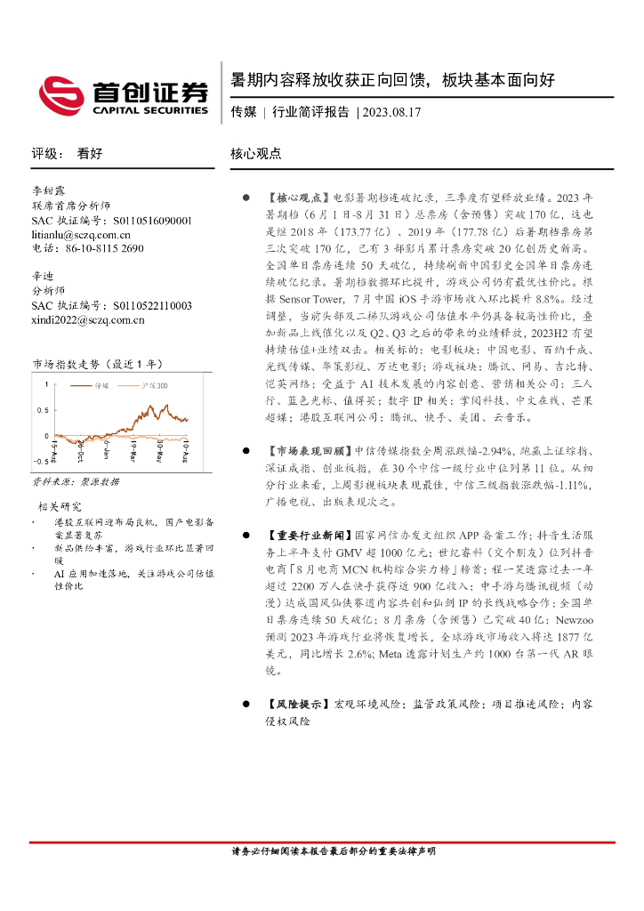 首创证券:传媒:暑期内容释放收获正向回馈,板块基本面向好.pdf
