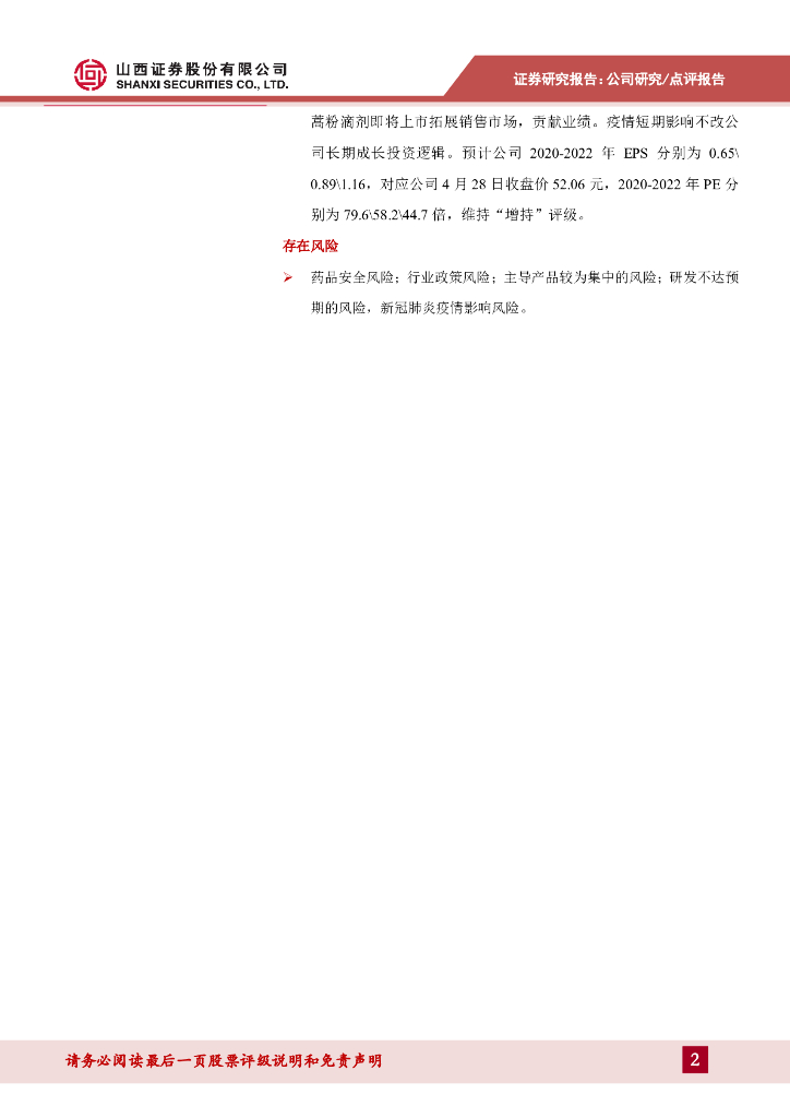 山西证券:我武生物(300357)-疫情影响短期业绩,新产品未来可期.pdf