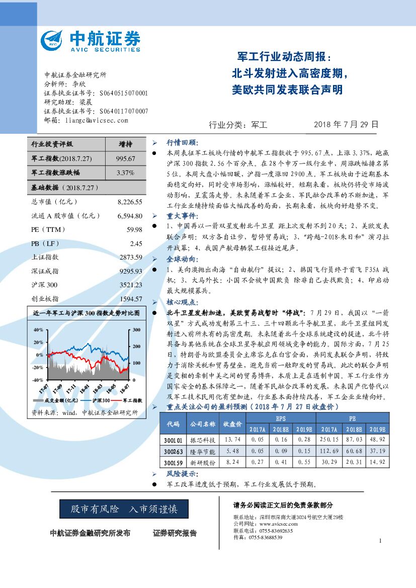 中航证券:军工行业动态周报:北斗发射进入高密度期,美欧共同发表联合声明.pdf