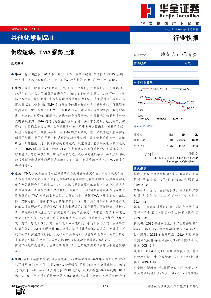 华金证券:其他化学制品Ⅲ:供应短缺,TMA强势上涨.pdf