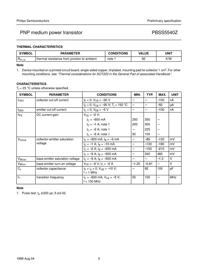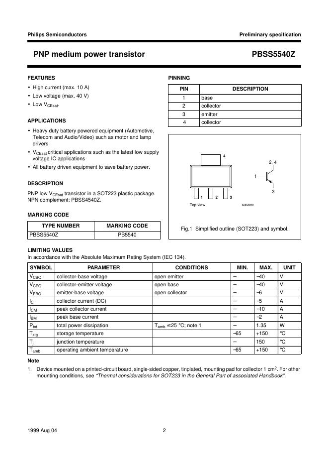 philips PBSS5540Z PNP medium power transistor 数据手册.pdf