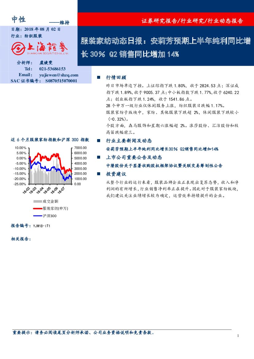 上海证券:服装家纺动态日报:安莉芳预期上半年纯利同比增长30% Q2销售同比增加14%.pdf