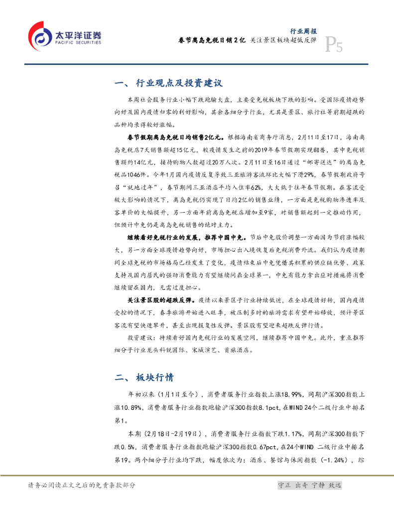 太平洋证券:消费行业周报:春节离岛免税日销2亿 关注景区板块超低反弹.pdf