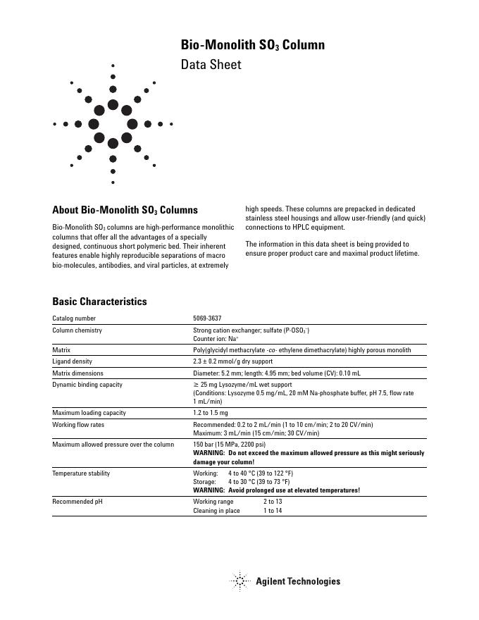 Agilent Bio-Monolith SO3 Column 数据手册.pdf
