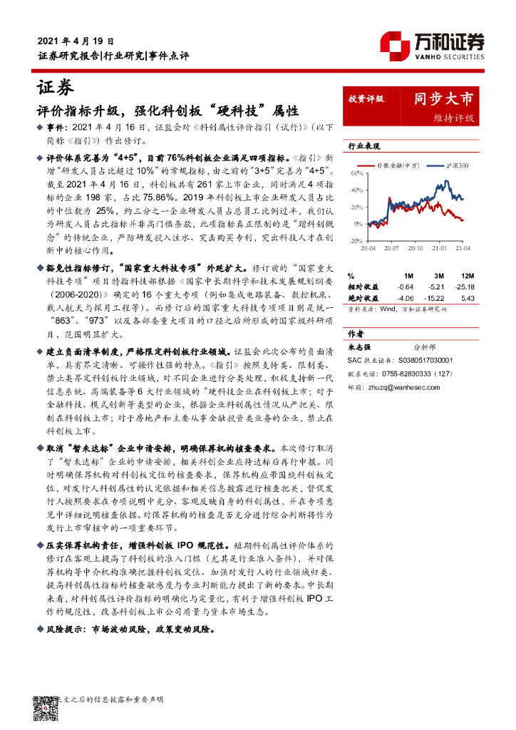 万和证券:证券行业事件点评:评价指标升级,强化科创板“硬科技”属性.pdf