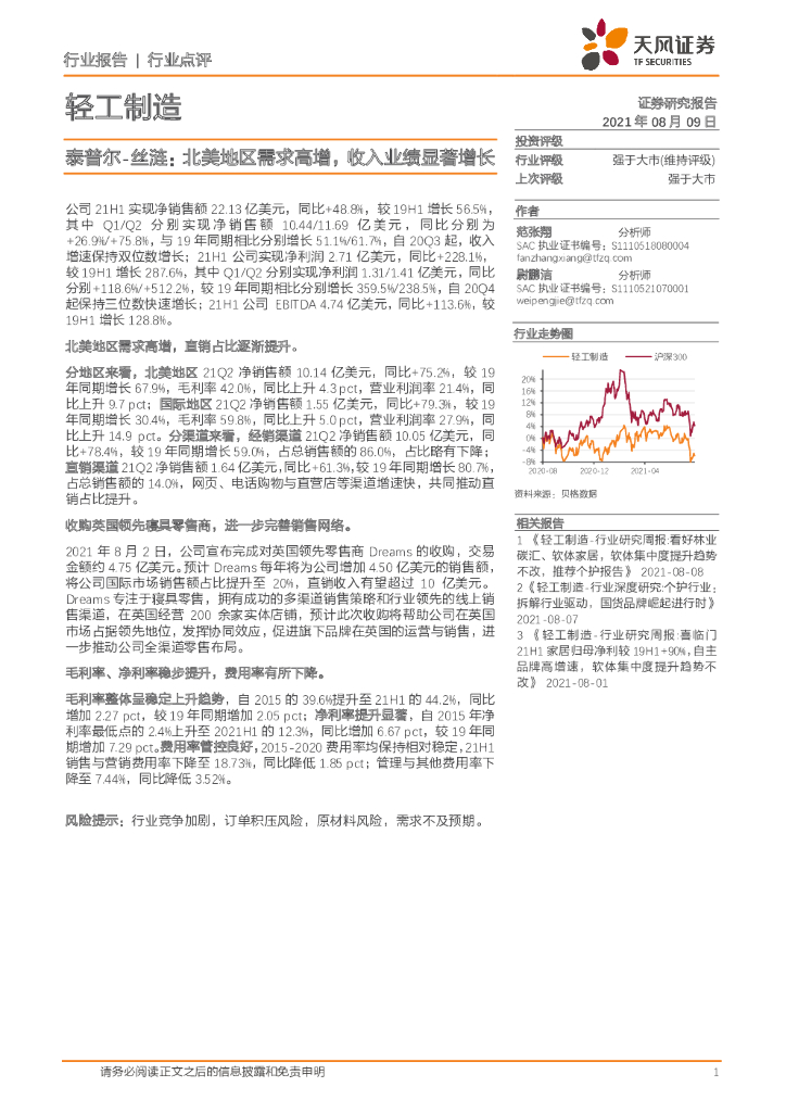 天风证券:轻工制造行业点评:泰普尔-丝涟:北美地区需求高增,收入业绩显著增长.pdf