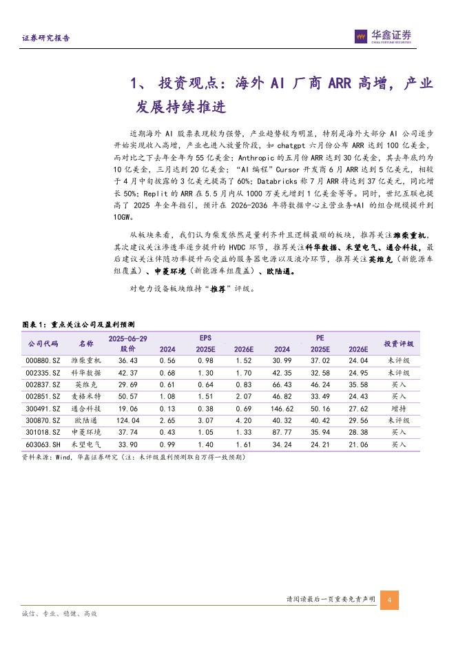 华鑫证券:电力设备行业周报:海外AI厂商ARR高增,产业发展持续推进.pdf