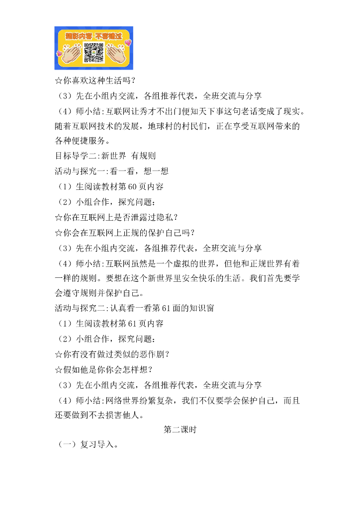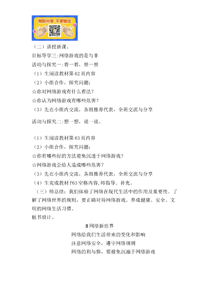 道德与法制8 网络新世界 1-2 课时 人教.doc