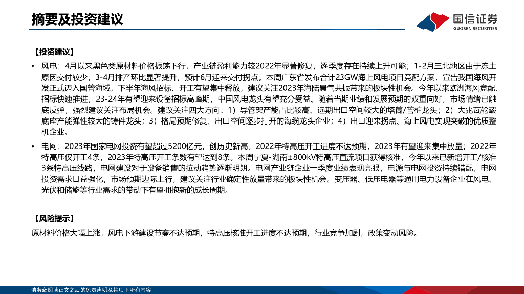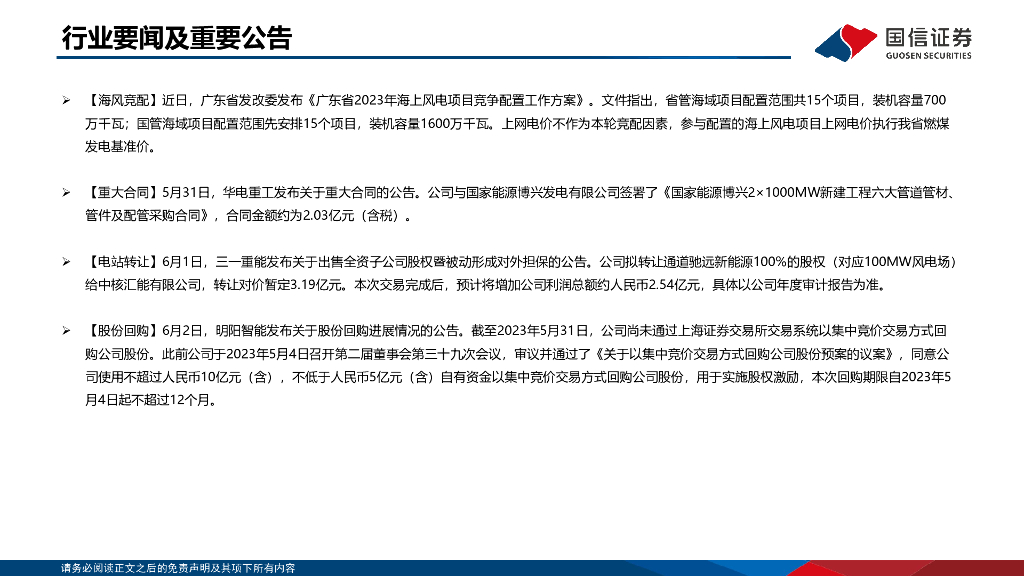 国信证券:风电/电网产业链周评(6月第1周):广东启动23GW海风项目竞配,宁夏-湖南特高压直流项目获准.pdf