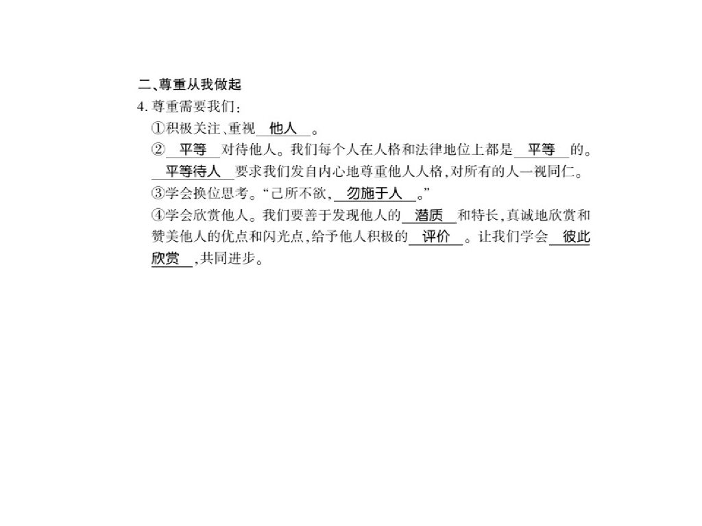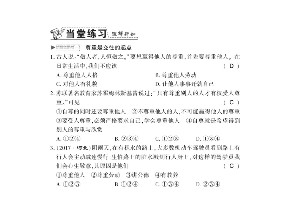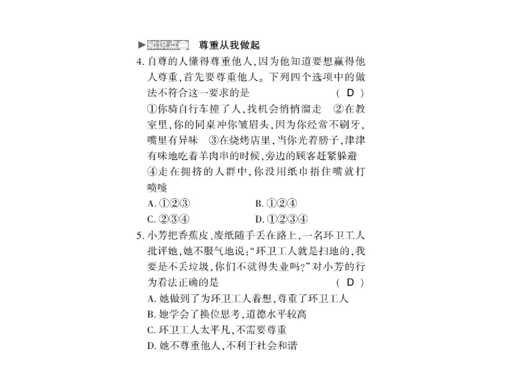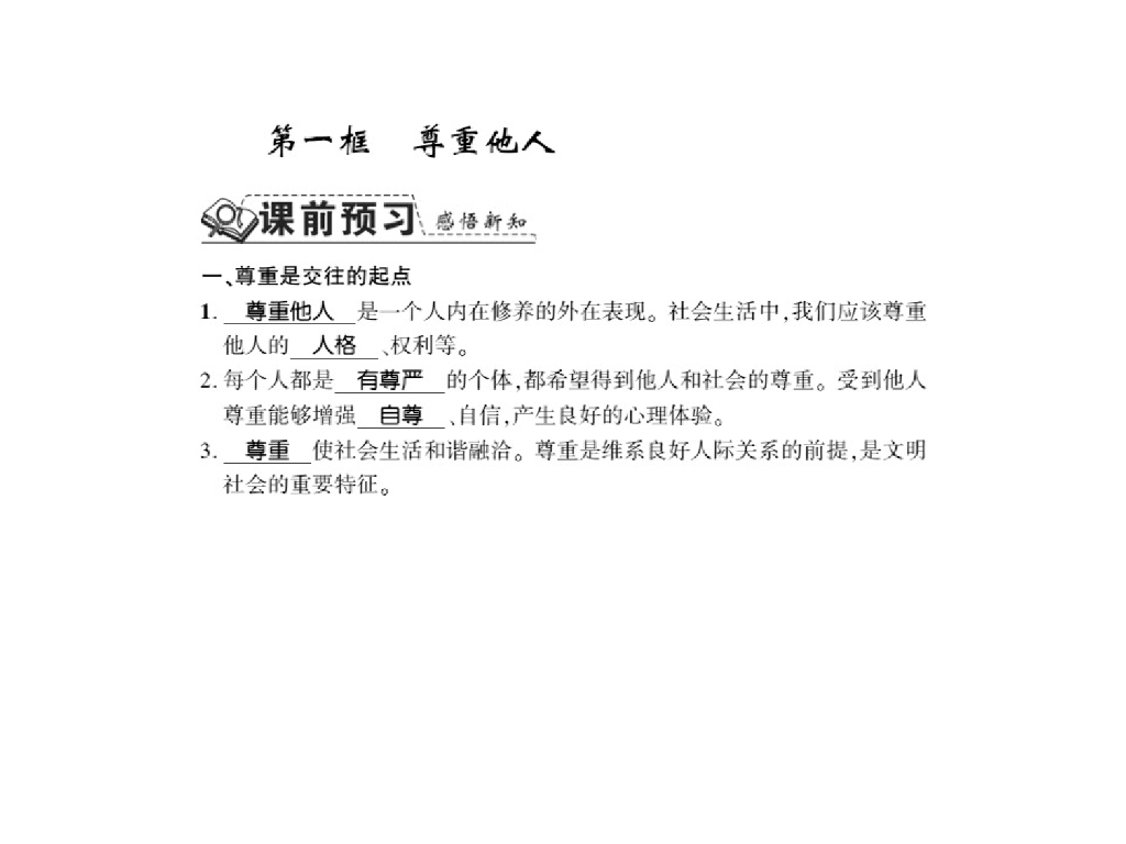 2021人教版八年级道德与法治上册习题课件:第四课第一框 尊重他人.ppt
