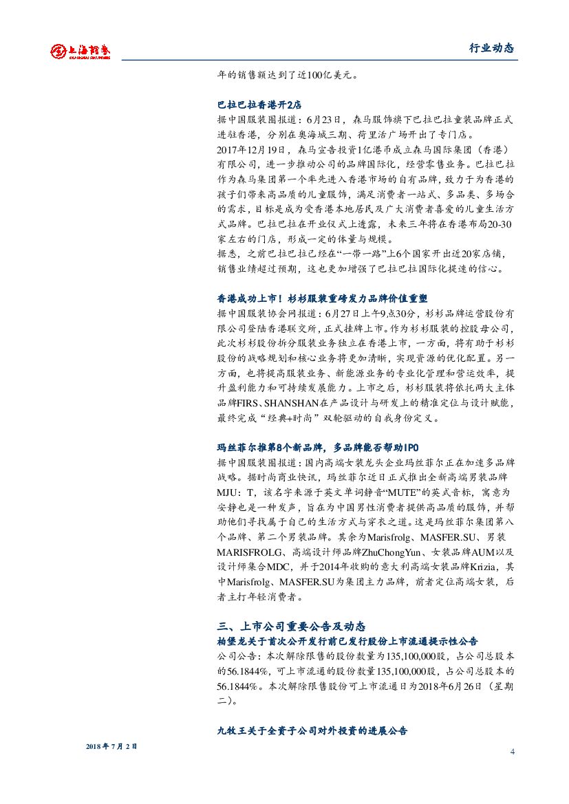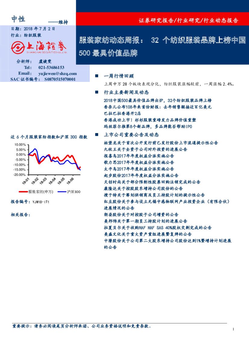 上海证券:服装家纺动态周报:32个纺织服装品牌上榜中国500最具价值品牌.pdf