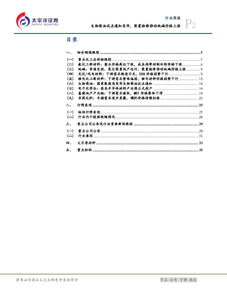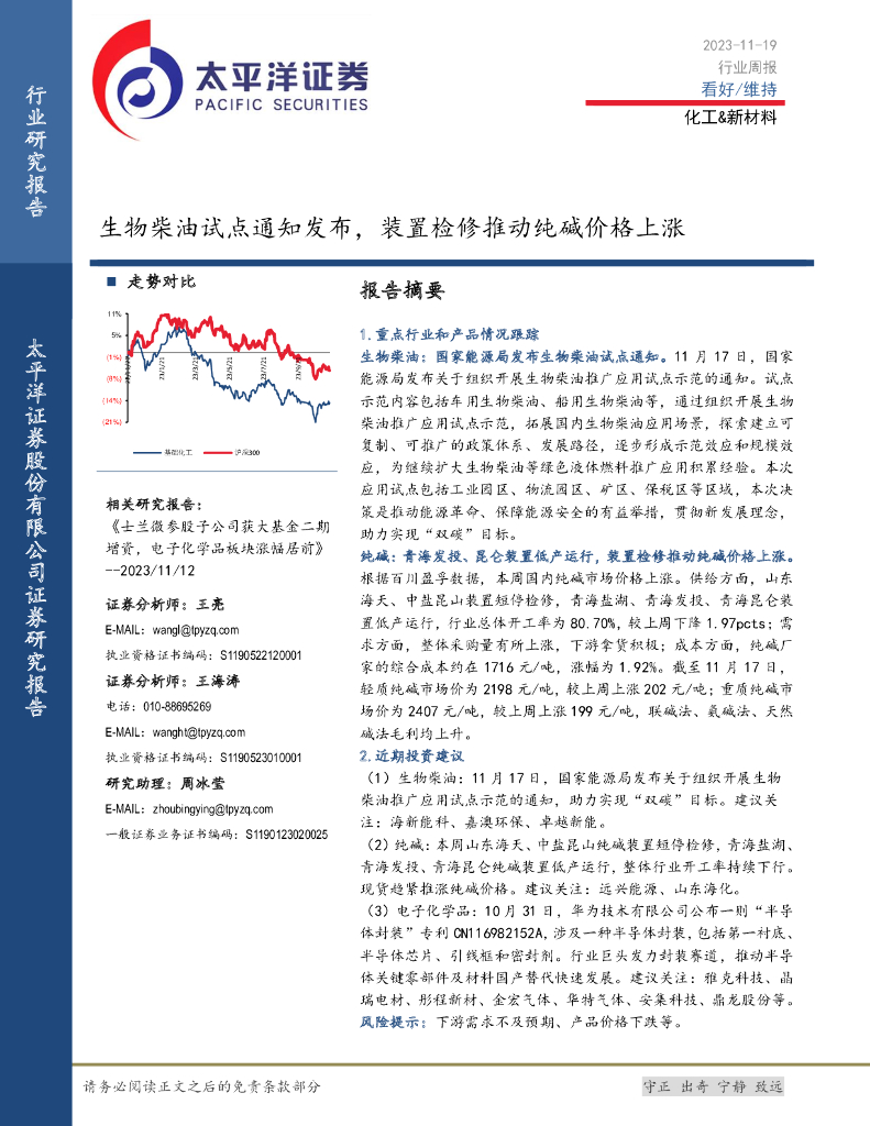 太平洋证券:化工&新材料行业周报:生物柴油试点通知发布,装置检修推动纯碱价格上涨.pdf