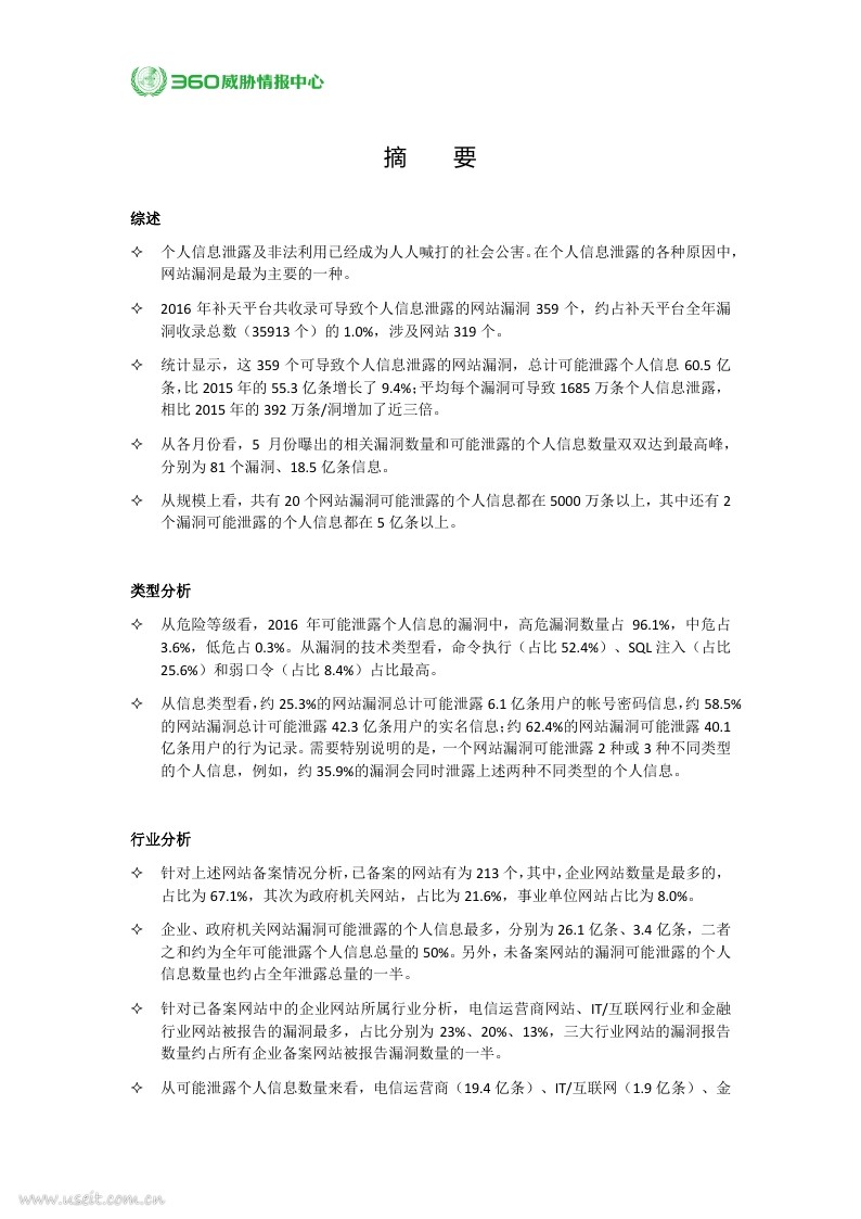 360威胁情报中心:2016年网站泄露个人信息形势分析.pdf