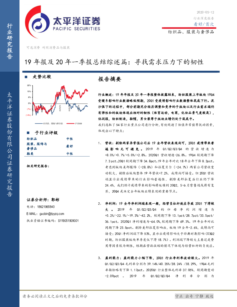 太平洋证券:纺织品、服装与奢侈品19年报及20年一季报总结综述篇:寻找需求压力下的韧性.pdf