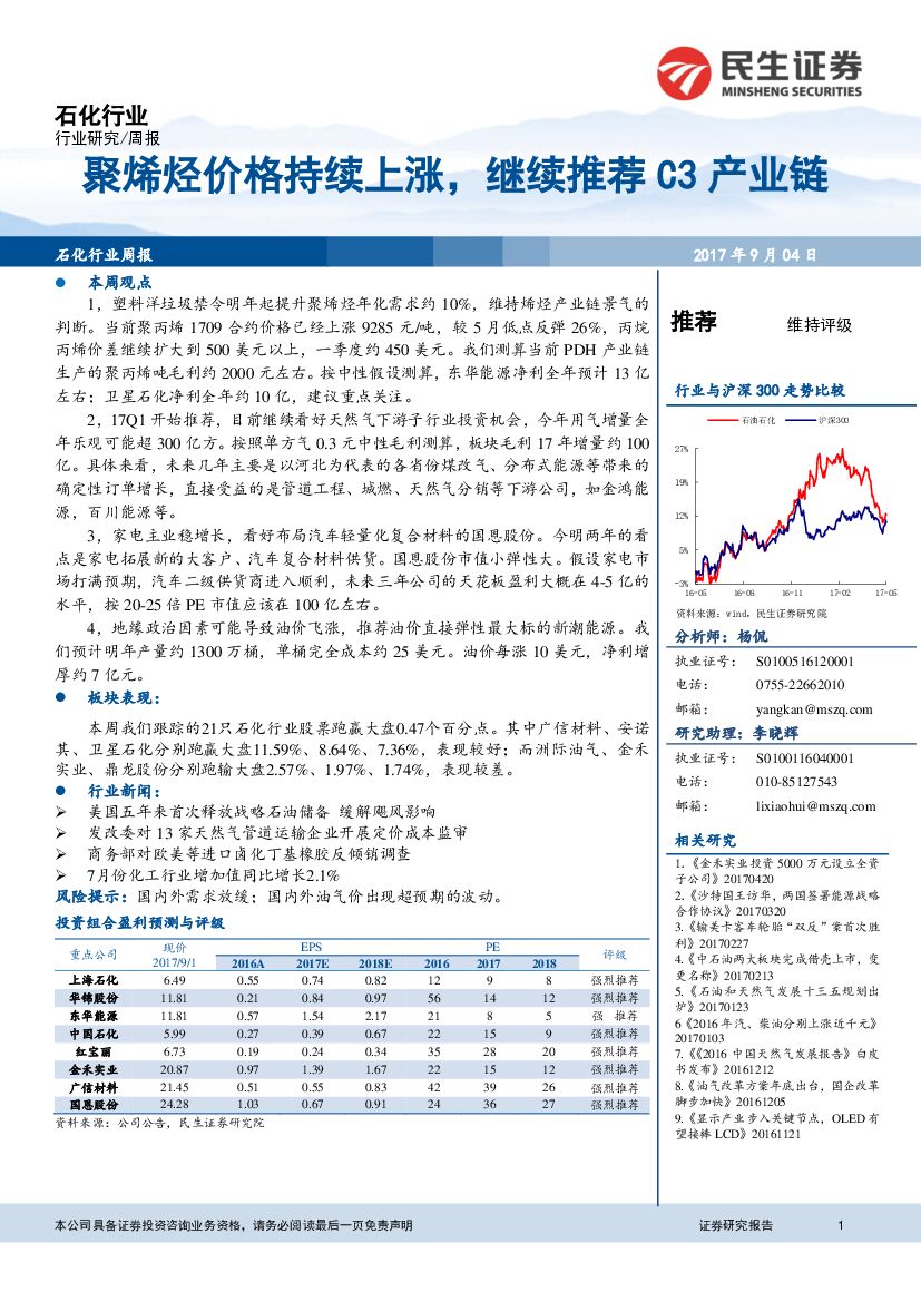民生证券:石化行业周报:聚烯烃价格持续上涨,继续推荐C3产业链.pdf